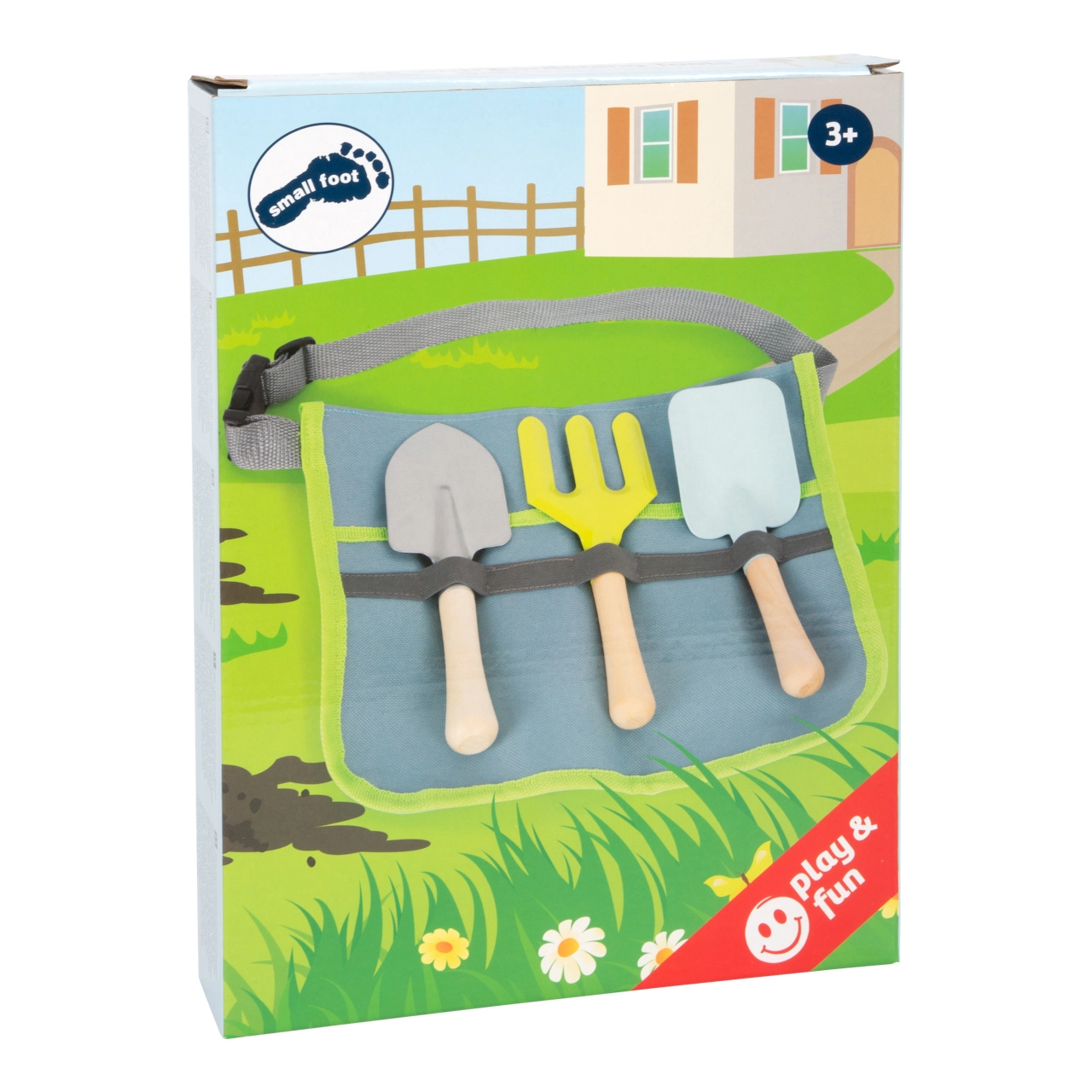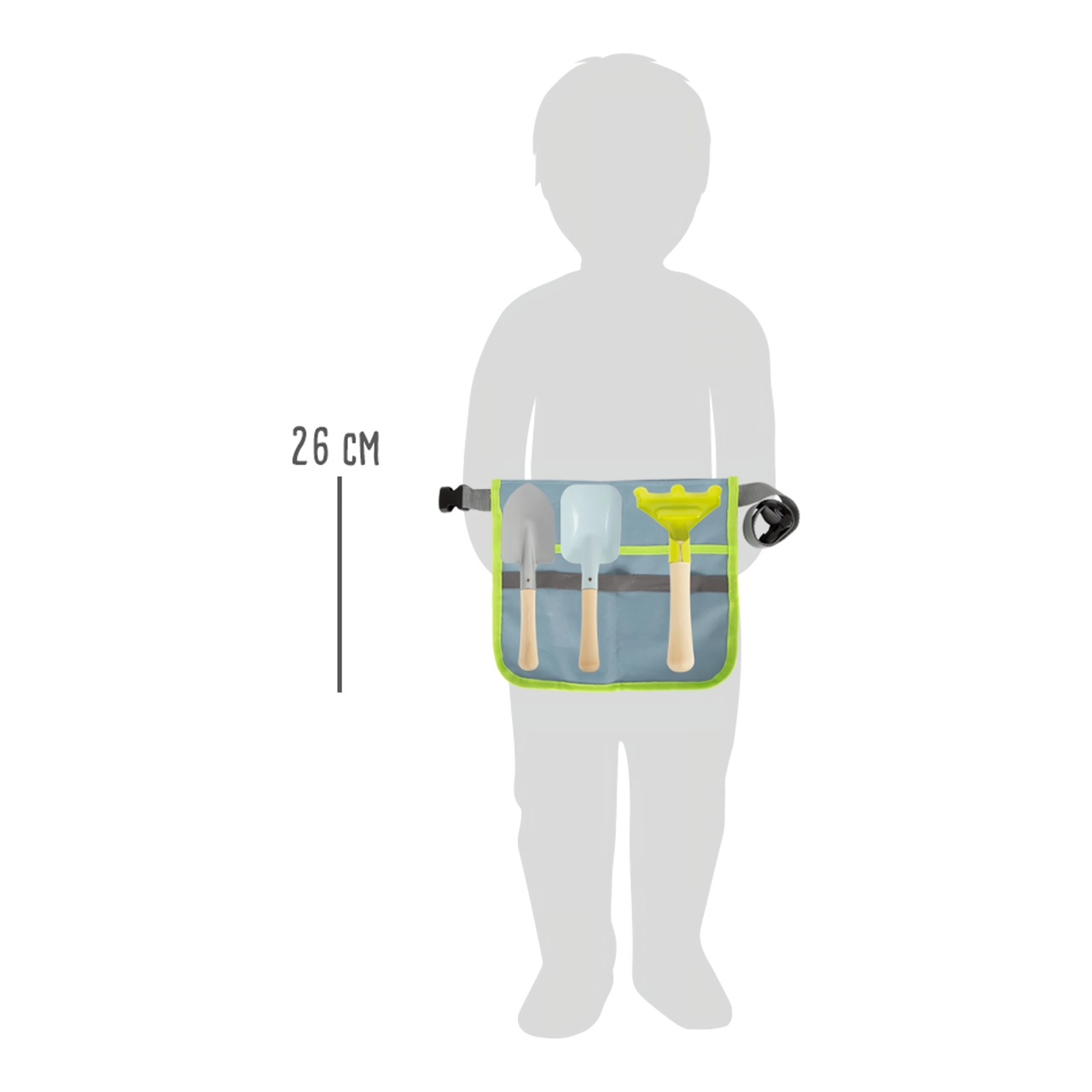 Šis išmanus rinkinys sujungia patogią juosmens tašę ir praktinius įrankius, kad vaikai galėtų lengvai sodinti, purenti ir pernešti žemę. Metalinių įrankių lygūs kraštai ir medinės rankenos pritaikyti mažoms rankoms ir atlaiko entuziastingą vaikų tempą. Diržas su reguliuojamu dirželiu laiko įrankius po ranka ir leidžia laisvai, saugiai judėti.