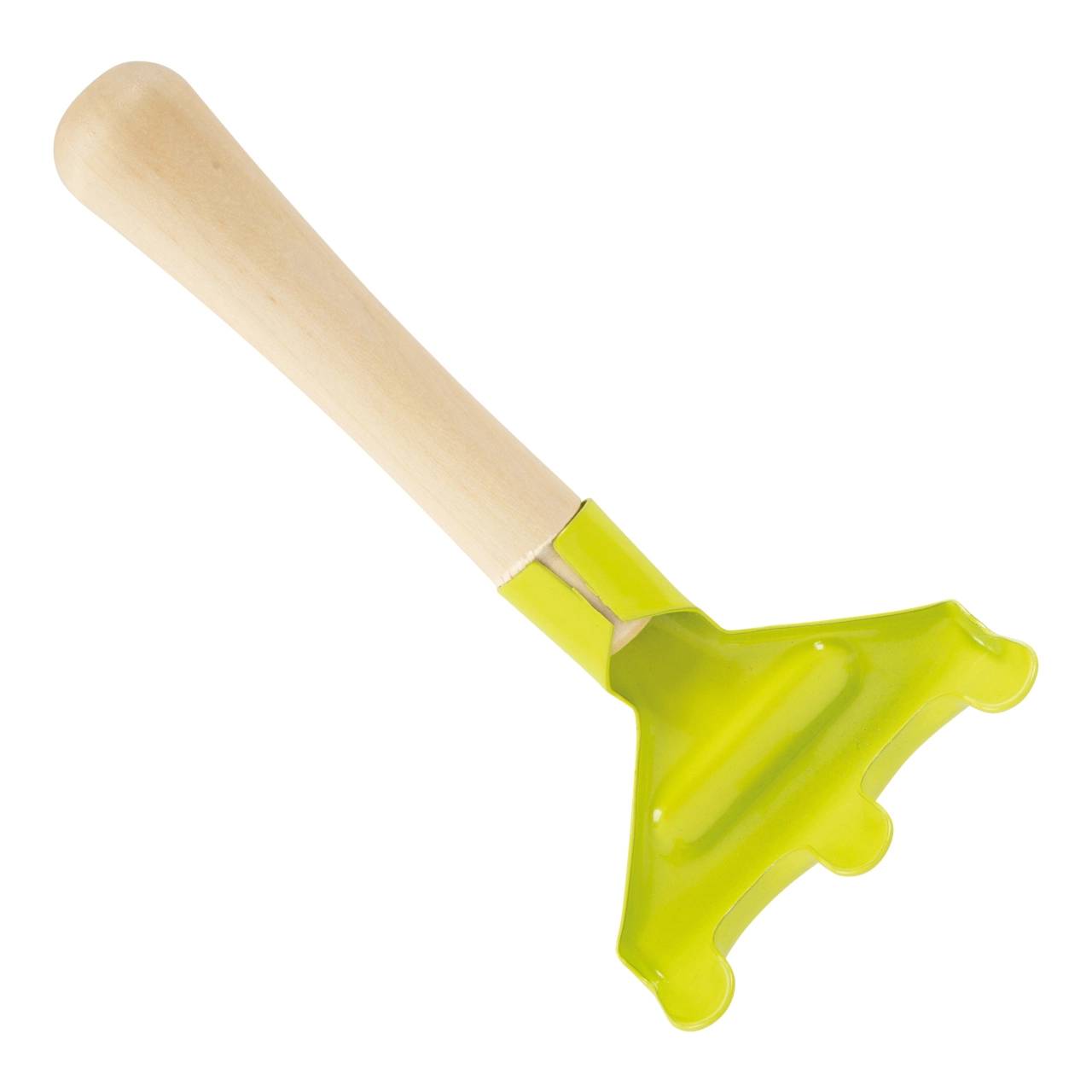 Kastuvėlis, grėbliukas ir kastuvas vaikiško dydžio yra pagaminti iš patvaraus metalo. Lygios medinės rankenos patogiai telpa į mažas rankas ir padeda užtikrintai suimti.