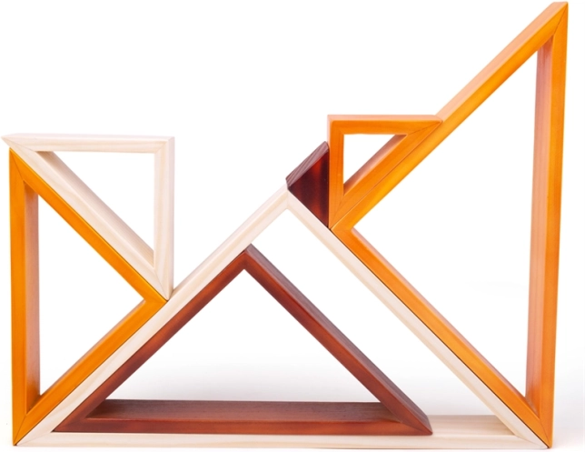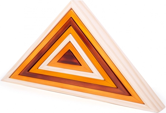 Šios medinės dėliojamos trikampės kaladėlės idealiai tinka mažiesiems kūrybiškiems statytojams. Nesant griežtų taisyklių ar nurodymų, vaikai natūraliai lavina įgūdžius ir atranda naujus dėliojimo būdus. Trikampius lengva jungti į įvairias formas, o vaikai mokosi atpažinti skirtingus dydžius ir spalvas.