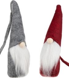 Suteikite namams Kalėdų jaukumo su dviem stovinčių nykštukų rinkiniu iš minkšto veltinio. Skirtingi dydžiai 29 ir 93 cm, pilkos ir raudonos spalvų derinys bei stabilus pagrindas dėl vidinio svarelio paverčia juos stilinga kalėdine dekoracija lentynai, komodai ar po eglute.