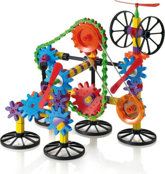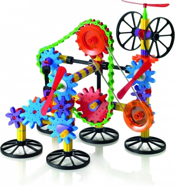 Spalvingi komponentai, strypai, ratai ir pavaros leidžia kurti tiek paprastus, tiek sudėtingus modelius. Fantazijai – jokių ribų.