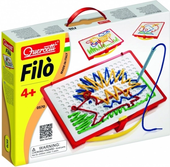 Atraskite kūrybinio žaidimo magiją su siuvinėjimo rinkiniu Quercetti Filò, kuris skatina vaizduotę ir smulkiąją motoriką. Naudodami specialius rašiklius, vaikai gali kurti įvairius paveikslėlius įstatydami spalvotus virvelius į žaidimų lentelės angas, o tai suteikia džiaugsmo ir pramogos.