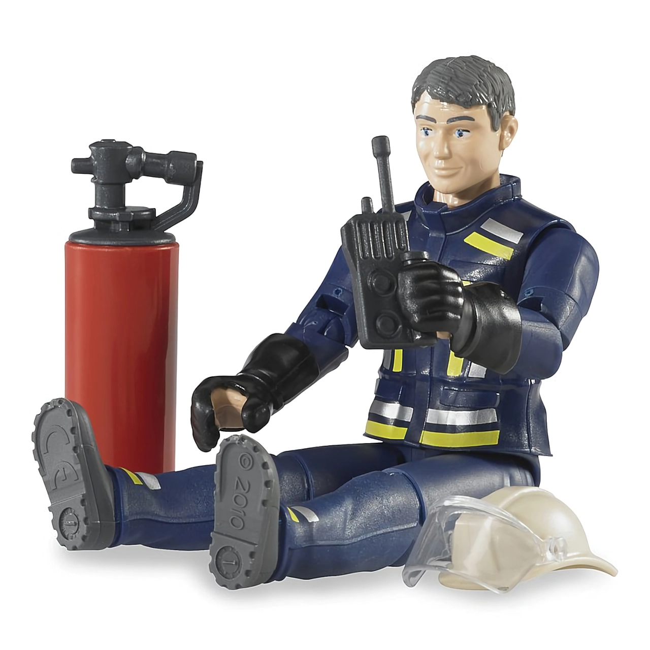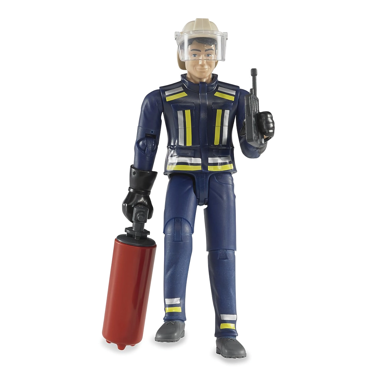 Realistiška BRUDER Bworld gaisrininko figūrėlė su judriais sąnariais ir gausia komplektacija suteikia vaikams valandų kūrybiško žaidimo. Komplekte yra šalmas su skydeliu, racija, gesintuvas ir pirštinės. Pagaminta Vokietijoje iš kokybiško ABS plastiko ir polikarbonato.