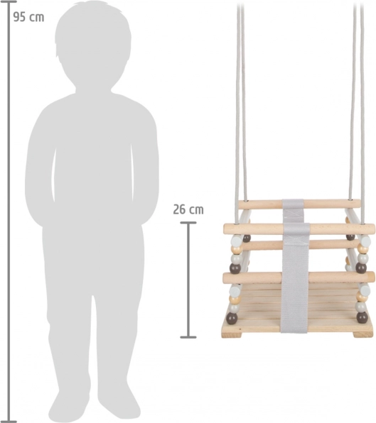Su mūsų medinėmis supynėmis bet kurią erdvę paversite džiaugsmo ir pramogų vieta. Paprastas aukščio reguliavimas naudojant perveriamas karabinas leidžia pritaikyti pagal jūsų vaiko poreikius. Šis elegantiškas skandinaviškas dizainas puikiai tinka tiek viduje, tiek lauke.