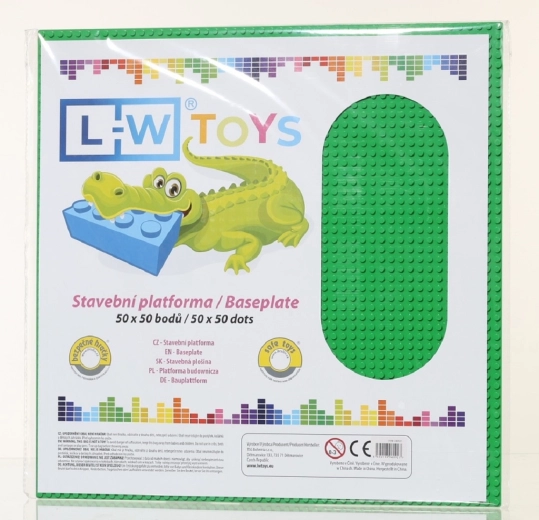 Didelė žalia statybų pagrindo plokštė, 50x50 taškų, suteiks jūsų statybų projektams tvirtą pagrindą. Suderinama su LEGO ir L-W Toys – tai būtinas priedas kiekvienam mažajam statytojui.
