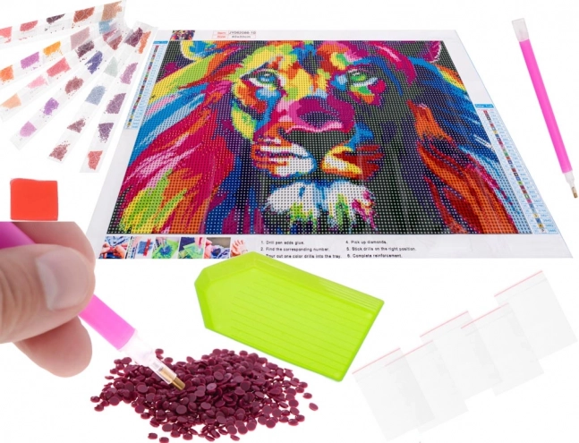 Sukurkite ryškų vaizdą su vaivorykštinio liūto motyvu naudodami 5D deimantinės mozaikos rinkinį. Ši atpalaiduojanti kūrybinė veikla sujungia paprastą procesą, akinantį žvilgesį ir detalų rezultatą. Tiesiog pildykite nurodytą raštą spalvotais akmenėliais ir pamažu išryškės įspūdingas kūrinys, puikiai papildysiantis jūsų interjerą.