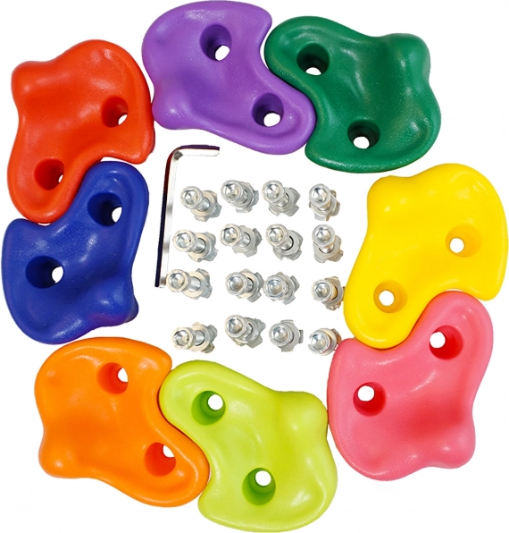 Ryškiaspalviai laipiojimo laikikliai – puikus pasirinkimas kiekvienam vaikų laipiojimo nuotykiui. Pakuotėje yra cinkuota tvirtinimo furnitūra, šešiakampiai (imbusiniai) varžtai ir kalamos veržlės – viskas, ko reikia lengvam ir greitam montavimui.
