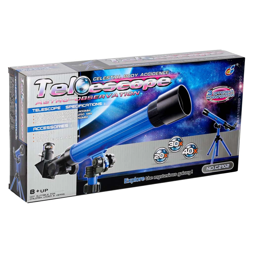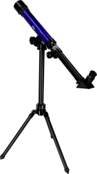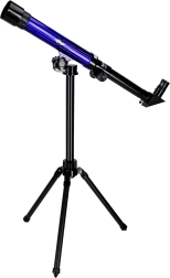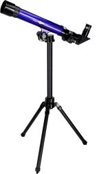Šis vaikiškas teleskopas puikiai tinka pirmajai pažinčiai su astronomija. Jis siūlo tris didinimo lygius (20x/30x/40x), todėl lengvai priartinsite Mėnulį, ryškias planetas ar antžeminius objektus. Stabilus stovas su 360° pasukimu ir reguliuojamu aukščiu užtikrina patogų stebėjimą.