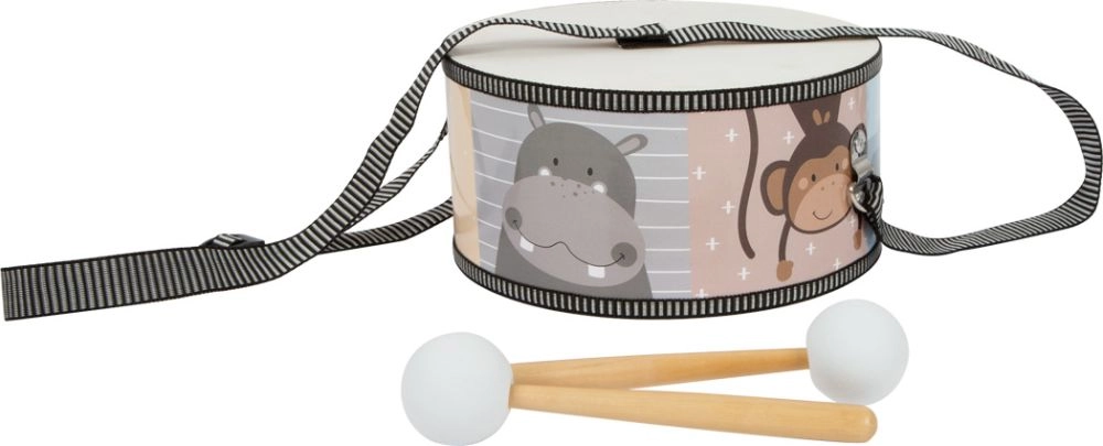 Vaikiškas būgnelis Spalvotas safaris iš Small Foot – puikus pasirinkimas ritmui, klausai ir smulkiajai motorikai lavinti. Dėl linksmų gyvūnėlių iliustracijų vaikai greitai jį pamėgs ir galės leistis į žygį – lengvas korpusas, reguliuojamas dirželis ir patogus lipdukų užsegimas užtikrina patogų naudojimą.