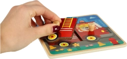 Medinė gaisrinės mašina dėlionė vaikams