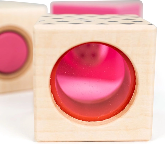 Šis jutiminių kaladėlių rinkinys sukurtas natūraliam tyrinėjimui ir ankstyvajam vystymuisi skatinti. Įvairūs paviršiai, spalvos ir garso elementai žadina vaikų smalsumą, stiprina akių–rankų koordinaciją ir smulkiąją motoriką. Dėl kompaktiškų 4 × 4 × 4 cm matmenų kaladėles lengva laikyti net patiems mažiausiems.