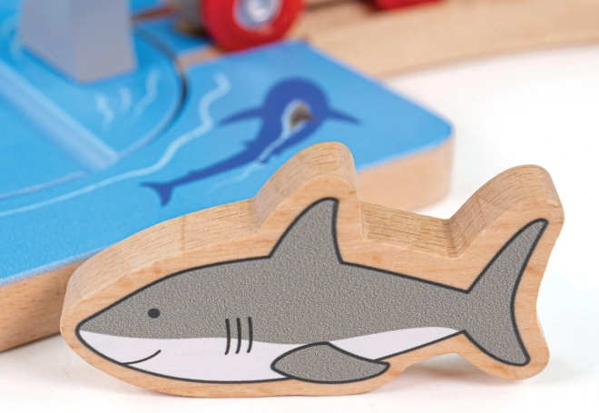 Saugokitės ryklio nasrų! Bigjigs Rail medinis geležinkelio plėtinys „Sūkurys su rykliais“ vaikams siūlo interaktyvią besisukančią platformą, dvi tvirtas ryklių figūrėles ir daug vaizduotę skatinančio žaidimo. Sukdami platformą vaikai pakaitomis atveria arba užblokuoja traukinio pravažiavimą, taip natūraliai lavindami smulkiąją motoriką, koordinaciją ir vaizduotę. Kokybiška medinė konstrukcija su nekenksmingais dažais ir suderinamumas su dauguma medinių geležinkelių užtikrina ilgaamžiškumą ir lengvą integraciją į esamą rinkinį.