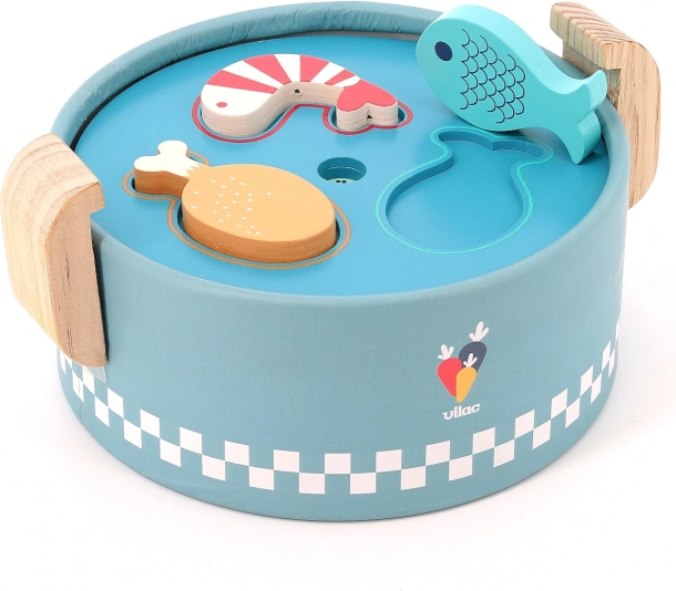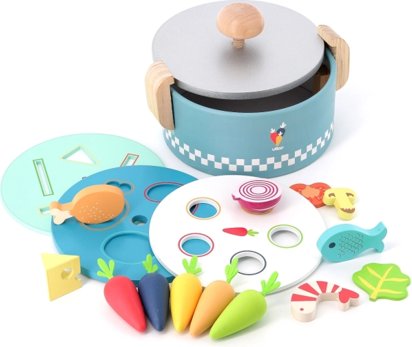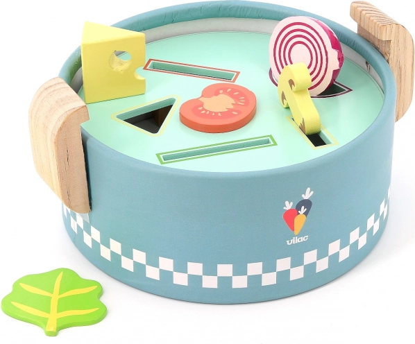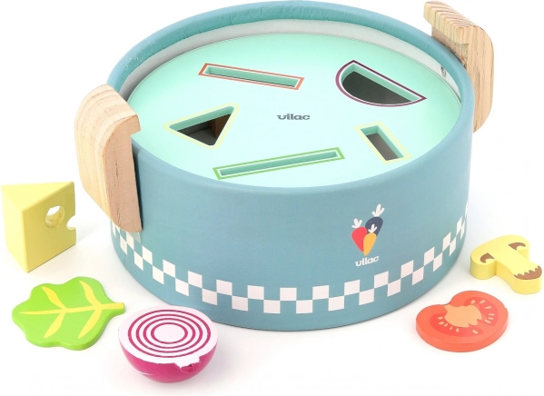 „VILAC“ įdedamas mini puodas – sumanus medinis žaislas patiems mažiausiems nuo 18 mėnesių. Po dangčiu slepiasi trys keičiamų plokštelių komplektai su skirtingomis formomis, į kurias vaikai deda ar meta spalvotus maisto gabalėlius. Taip gimsta „tikras“ virimas, kuris lavina vaizduotę ir praktinius įgūdžius.