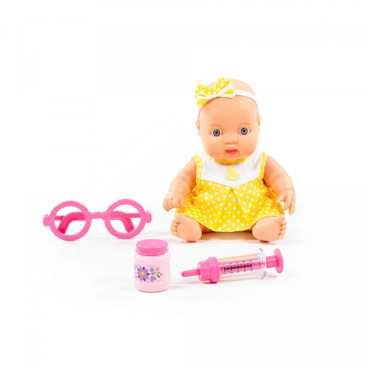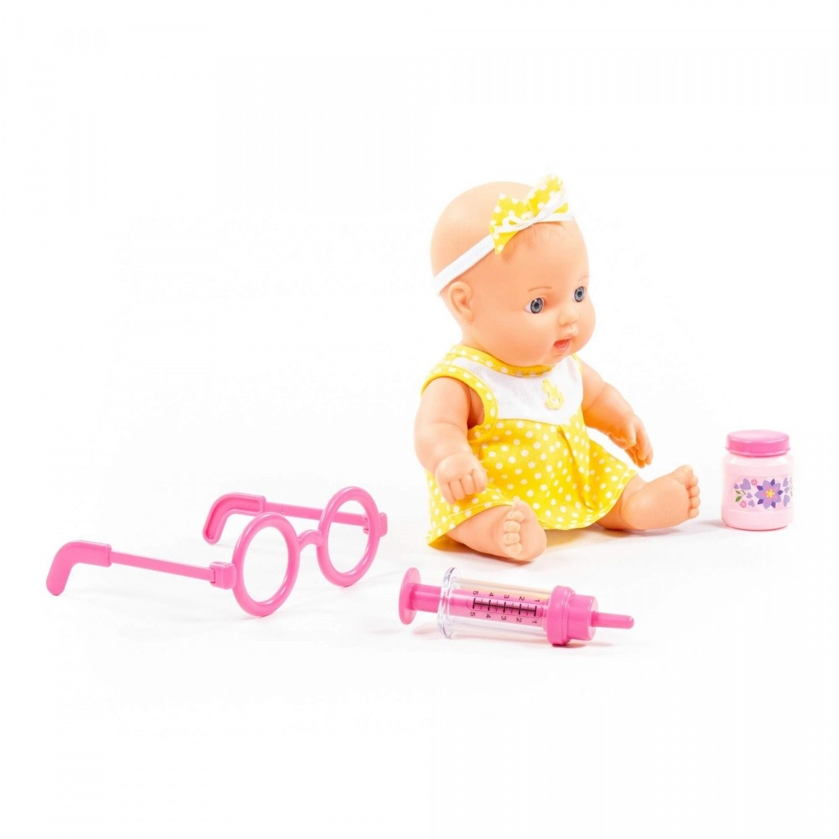- Lėlė, akiniai, švirkštas, buteliukas (ir kiti teminiai priedai)