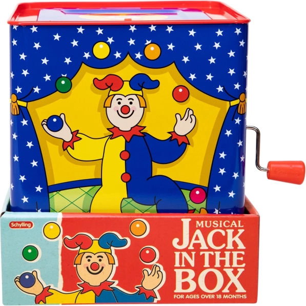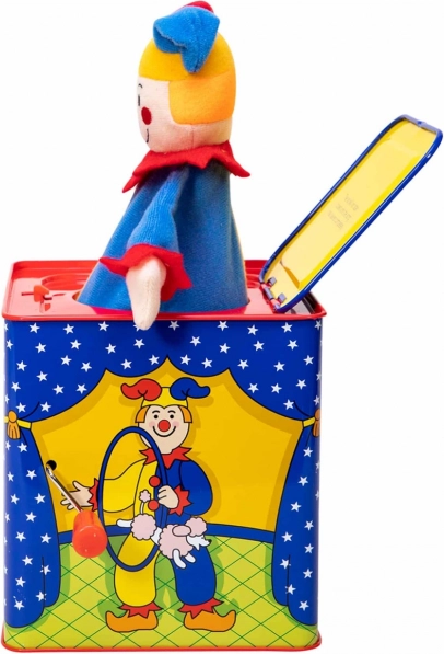 Ši muzikinė dėžutė su kaukučiu išsiskiria cirkuso grafika ir tvirta konstrukcija, kuri žada ilgalaikį džiaugsmą. Pasukus rankenėlę skamba melodija, kuri kiekvienam vaikui sukelia šypseną.