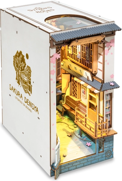 Pagyvinkite savo knygų lentyną išskirtiniu dekoratyviniu laikikliu namelio formos iš teminės kolekcijos „Sakurų gatvelė“. Diorama, kupina žavingų detalių, kuri atgaivins kiekvieną istoriją, su LED apšvietimu ir lietimui jautriu jungikliu.