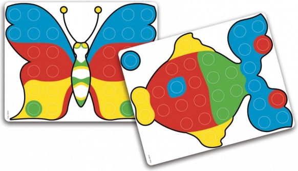 Rinkinyje yra 8 dvišalės kortelės su motyvais, kurie padeda vaikams sudėti pirmuosius paveikslėlius ir plėtoti savo fantaziją.