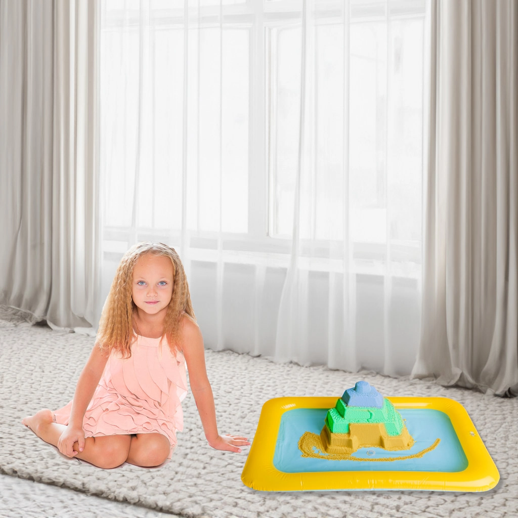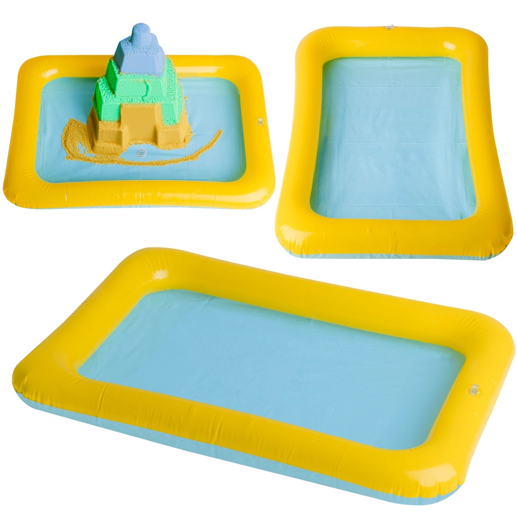 Kompaktiška pripučiama smėlio dėžė, 56 × 40 cm, suteikia vaikams saugią ir švarią erdvę žaisti su smėliu namuose ir lauke. Ji lengva, paprastai pernešama ir išleidus orą užima labai mažai vietos. Pagaminta iš tvirto PVC, su klasikiniu vožtuvu greitam pripūtimui ir išleidimui. Produktas galimas įvairių spalvų, kurios siunčiamos atsitiktinai. Idealu pilims statyti, jutiminiams žaidimams ir be netvarkos dėl paaukštintų kraštų.