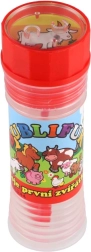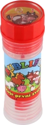 Linksmas muilo burbulų skystis su motyvu Mano pirmieji gyvūnėliai pradžiugins kiekvieną vaiką. Buteliuke yra 50 ml burbulų skysčio, dangtelyje integruotas žaidimas, o pūstukas yra dangtelio dalis. Puikiai tinka šventėms, žaidimams lauke ir kaip mažas prizas. Tinka vaikams nuo 6 metų.