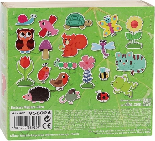 Atraskite kūrybines galimybes su Vilac mediniais magnetukais sodo tema. Šie tvirti ir ekologiškai pagaminti elementai suteikia neribotas galimybes žaidimams ir dekoracijoms. Mėgaukitės gražiomis, spalvingomis iliustracijomis, kurios gali papuošti šaldytuvą ar vaiko kambarį.