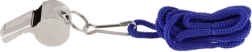 Šis metalinė švilpukas blizgios sidabrinės spalvos sukurtas aiškiam garso sklidimui, todėl tinka sportui ar skubiam naudojimui. Pakuotėje yra mėlyna tekstilinė virvelė, leidžianti patogiai nešioti ant kaklo. Idealiai tinka treneriams, teisėjams ir šeimos renginiams.