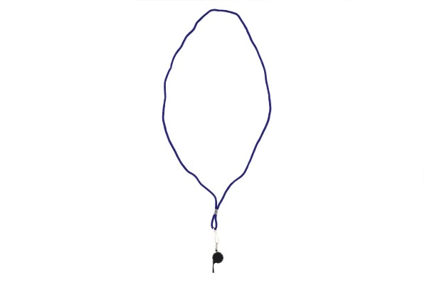 Mėlyna tekstilinė virvelė leidžia nešioti švilpuką ant kaklo, todėl jis visada lengvai pasiekiamas.