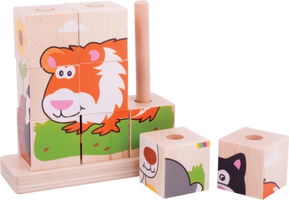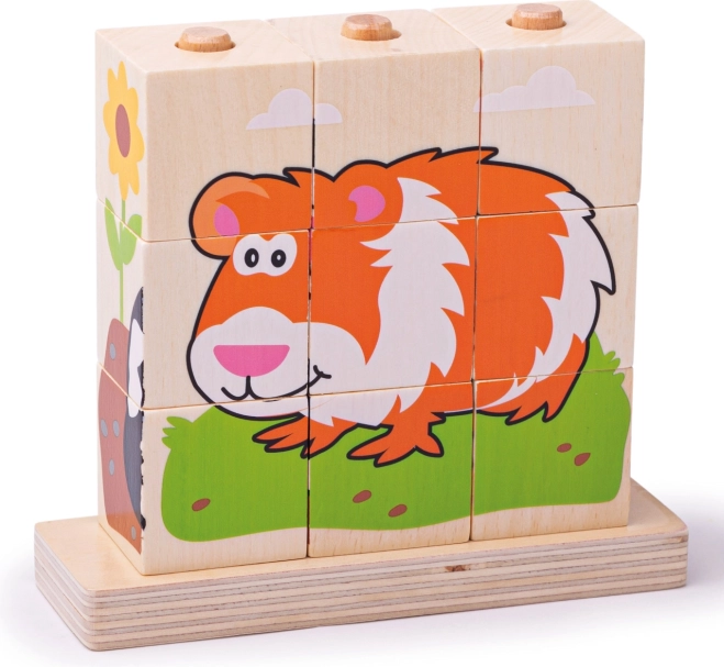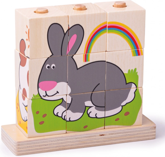 Devynios kaladėlės sudaro keturis skirtingus gyvūnėlių motyvus, kurie skatina kartotinį dėliojimą ir ugdo loginį mąstymą bei vizualinį suvokimą.