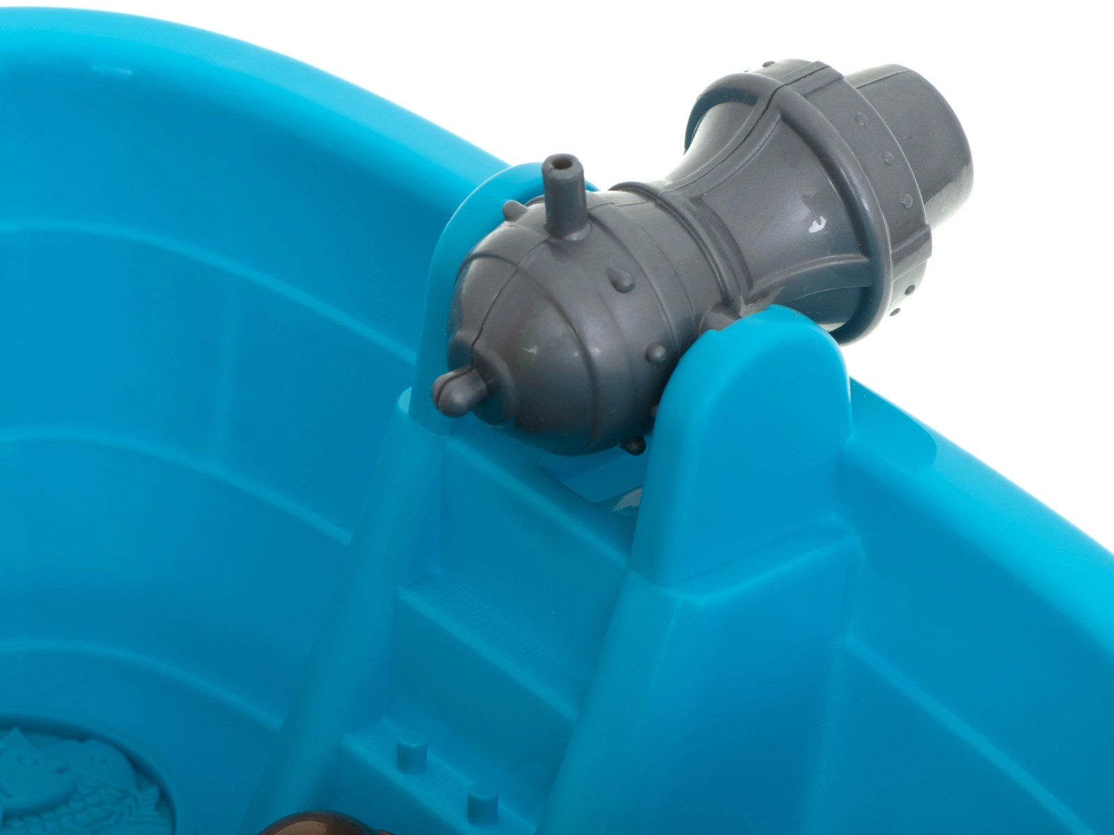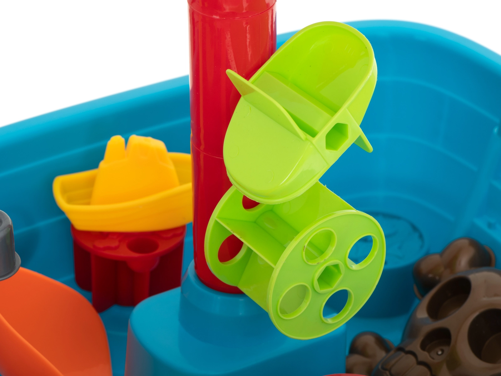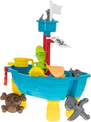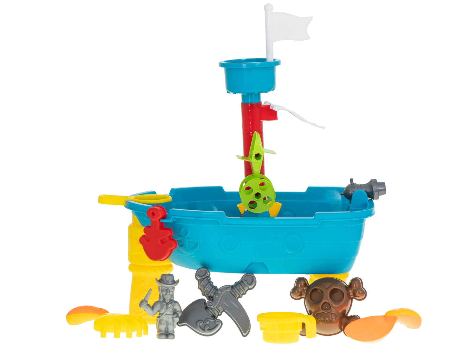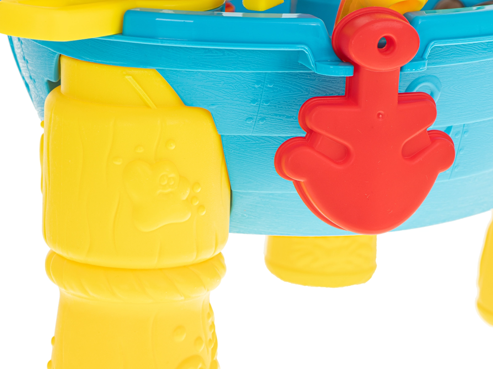 Su piratiniuoju laivo žaidimų stalu, jungiančiu vandens ir smėlio žaidimus, vaikai leidžiasi į nesibaigiančius nuotykius. Šis daugiafunkcis staliukas atvers jiems pasaulį, pilną vandens pramogų ir smėlio statybų.