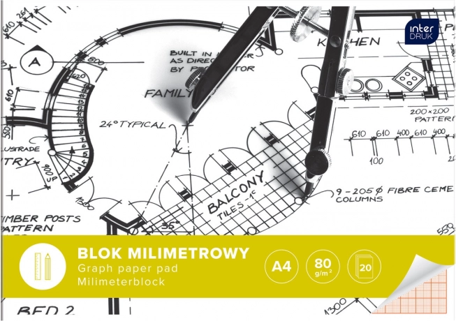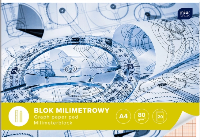 Praktiškas A4 formato milimetrinio popieriaus bloknotas iš INTERDRUK – idealus techniniam braižymui, diagramoms ir grafikams. Smulkus milimetrinis tinklas leidžia dirbti preciziškai, o 80 g/m² gramatura užtikrina tvirtumą. 20 lapų su tvirtu klijuotu įrišimu ir stora kartonine nugarėle suteikia stabilų pagrindą net be stalo. Kreidinio popieriaus viršelis – įvairių, atsitiktinai parenkamų dizainų.