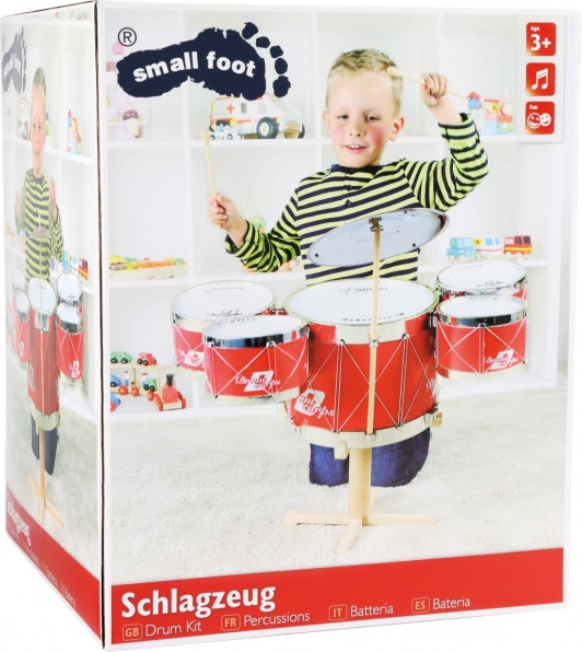 Pradėkite namų koncertus su stilingu SMALL FOOT vaikų būgnų komplektu ryškiai raudonos spalvos. Rinkinys iš kokybiškos medienos ir metalo apima 5 būgnus, lėkštę, stovą ir 2 lazdeles. Tvirta konstrukcija padeda lavinti ritmą, koordinaciją ir smulkiąją motoriką vaikams nuo 3 metų.