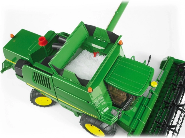 Šis detaliai išbaigtas BRUDER kombainas masteliu 1:16 ištikimai atkuria tikrąjį John Deere T670i. Dėl funkcinių dalių – nuo pasukamos pjaunamosios per vairuojamus galinius ratus iki išlankstomų viršutinių ir šoninių dangčių – vaikai supras tikrus derliaus nuėmimo principus ir mėgausis valandomis kūrybiško žaidimo.