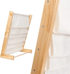 Lentyna pagaminta iš natūralios medienos ir aukštos kokybės medvilninio audinio, turi lygias briaunas ir stabilią konstrukciją maksimaliam saugumui. Laiko nepavaldi medžio ir baltos spalvų derinio išvaizda dera su bet kuriu interjeru ir skatina sveikus skaitymo įpročius bei tvarkos mokymąsi.