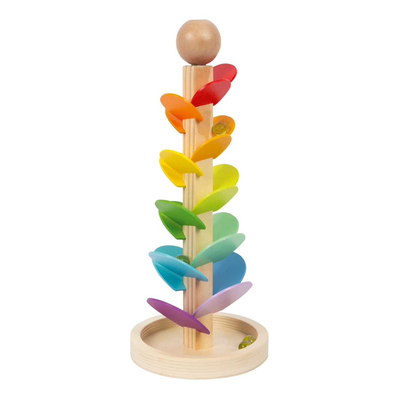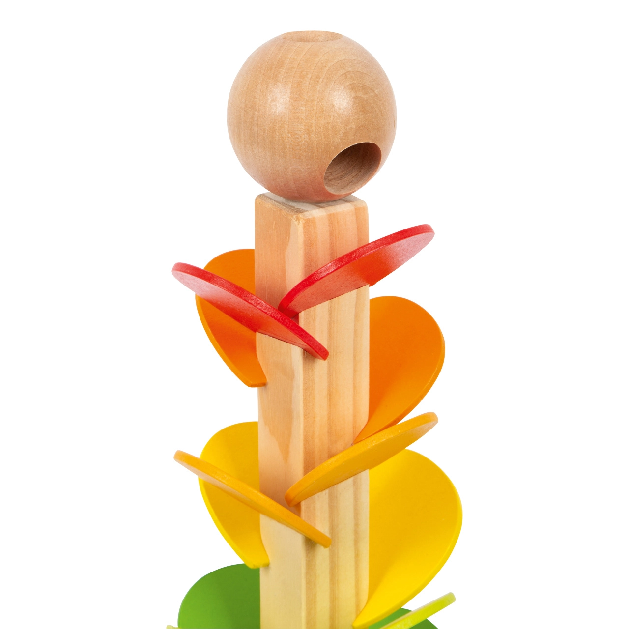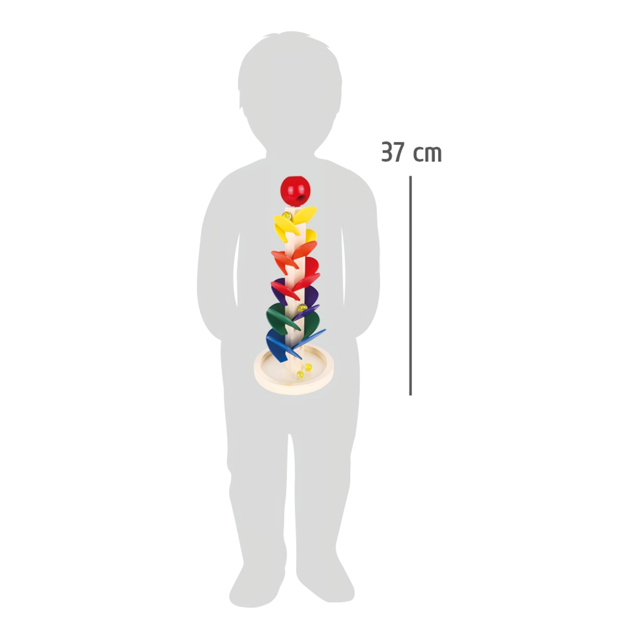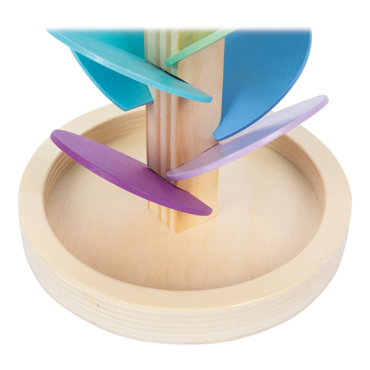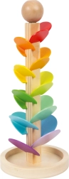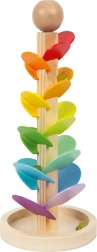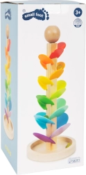 Medinė Small Foot rutuliukų trasa kiekvieną rutuliuko paleidimą paverčia mažu koncertu. Kai stiklinis rutuliukas slysta spalvingais lapeliais, palaipsniui atsiranda nuo aukštesnių iki žemesnių tonų, kurie skatina klausos suvokimą ir suteikia vaikams raminančią bei smagią patirtį. Tvirta medinė konstrukcija su stabiliu pagrindu ir glotniu paviršiumi yra maloni liesti ir paruošta kasdieniam žaidimui.