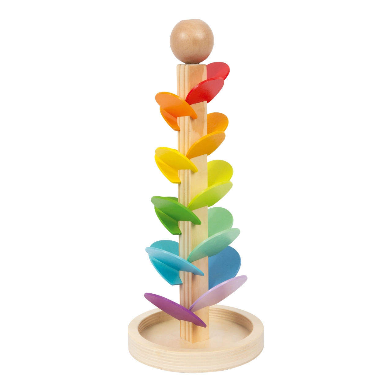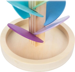 Kiekvienas spalvotas lapelis yra skirtingo dydžio ir kontaktuodamas su rutuliuku sukuria nuo aukštesnių iki žemesnių tonų seką. Taip vaikai treniruoja klausą, susikaupimą ir kantrybę.