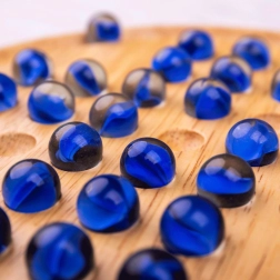 Lygi medinė apvali lenta ir blizgūs stikliniai rutuliukai suteikia malonų pojūtį žaidžiant ir ilgą tarnavimo laiką.