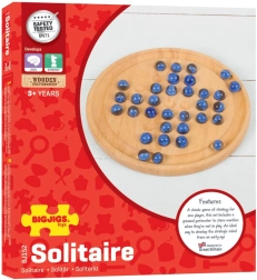 Atraskite nesenstančią pramogą su BIGJIGS TOYS mediniu solitaire. Blizgantys mėlyni rutuliukai ir kruopščiai apdirbta apvali lenta kuria elegantišką loginį žaidimą, kuris patikrins jūsų sumanumą ir kantrybę. Tikslas – šokinėjant po vieną rutuliuką palikti lentoje tik vieną.