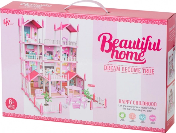 Puiki pramoga jūsų vaikams! Rožinė vila siūlo begalines galimybes kūrybiškam žaidimui. Vaikai gali pritaikyti keturis aukštus pagal savo įsivaizdavimą ir susikurti jaukius namus lėlėms. Į pakuotę įeina baldų rinkinys ir dekoratyviniai elementai, kurie suteikia realistinę išvaizdą.