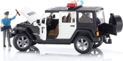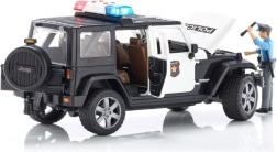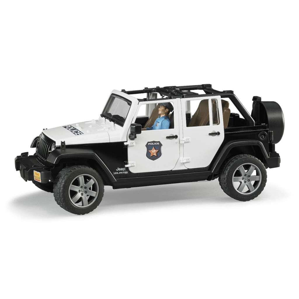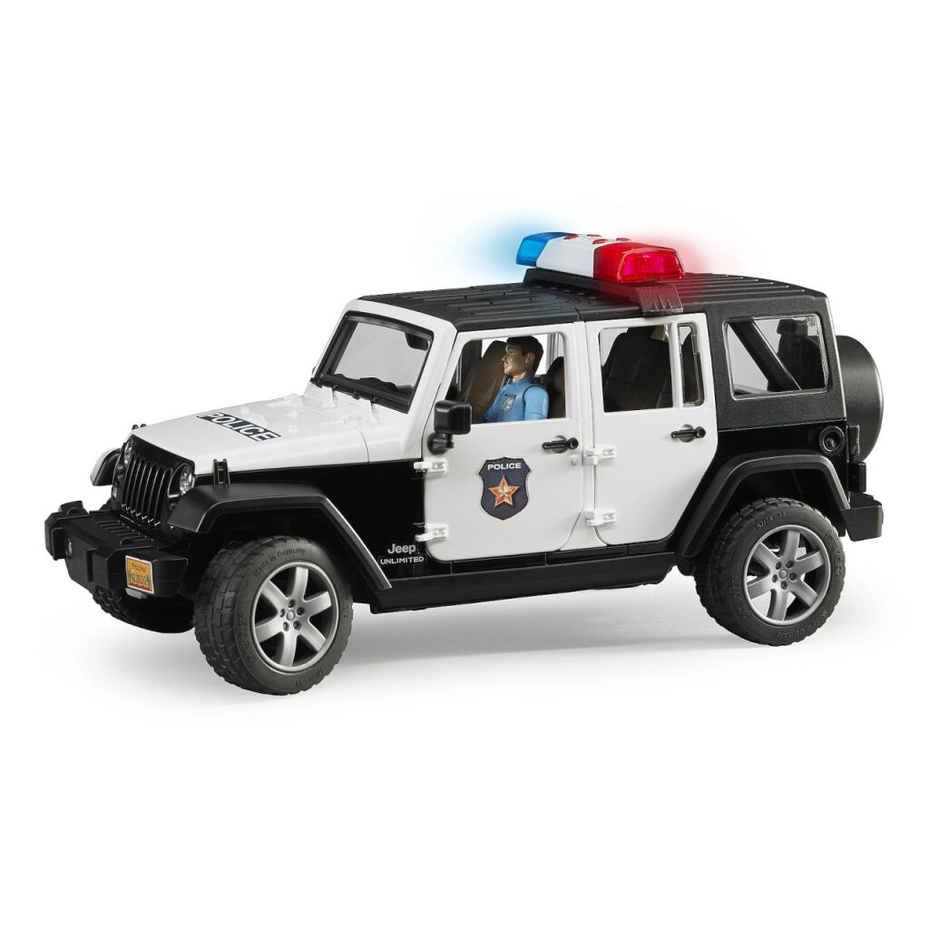 Policijos Jeep Wrangler Rubicon iš BRUDER yra tikro automobilio kopija 1:16 masteliu. Vaikus sužavės detaliai atkurtas salonas ir variklio skyrius, prie kurio galima patekti atidarius variklio dangtį. Modelis suderinamas su BRUDER Bworld figūrėlėmis ir priedais, viduje telpa iki 4 figūrėlių.