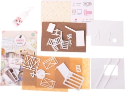 Pakuotėje rasite viską, ko reikia: kambario surinkimo dalis, įrangos ir dekoracijų elementus, klijus ir išsamų paveikslinį vadovą. Apšvietimas maitinamas 2× AAA 1,5 V ir 3× LR54 1,5 V baterijomis (baterijos į komplektą neįeina). Rekomenduojama nuo 8 metų. Baigto modelio matmenys 17,1 × 13 × 11,6 cm; pakuotės 25 × 18 × 6 cm.
