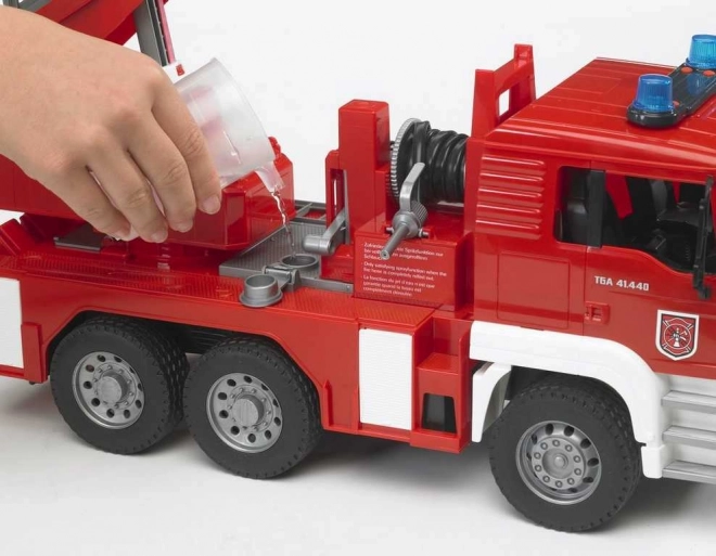 MAN gaisrinis automobilis masteliu 1:16 yra detalus ir realistiškai atrodantis modelis, aprūpintas veikiančiu vandens siurbliu, didelėmis ištraukiamomis kopėčiomis ir daugiafunkciu šviesos bei garso moduliu. Puikus žaislas visiems mažiesiems gaisrininkams!
