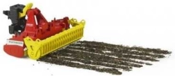 Realistiška BRUDER PÖTTINGER dirvos freza masteliu 1:16 pradžiugins mažus ūkininkus ir kolekcininkus. Siūlo daug funkcijų, paprastą padėties keitimą, galimybę pakelti transportavimui ir atidengiamą apsauginį dangtį. Važiuojant realistiškai juda dantračiai. Suderinama su visais BRUDER traktoriais 20xx, 21xx ir 30xx serijų. Pagaminta Vokietijoje iš kokybiško ABS plastiko.