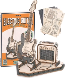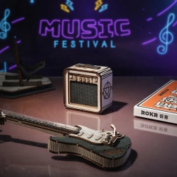Ši medinė 3D elektrinės gitaros dėlionė pradžiugins visus muzikos ir elegantiškų dekoracijų mylėtojus. Modelis sukurtas eksponavimui – be judančių dalių, su švaria natūralia išvaizda ir preciziškai išraižytomis detalėmis, kurios išsiskiria bet kuriame interjere.