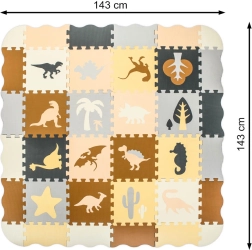 Stilingas putų kilimėlis su dinozaurų motyvu pavers bet kurį kambarį saugia ir žaisminga erdve. Detalės lengvai susisieja tarpusavyje – iš jų sukursite didelį kilimėlį arba minkštą aptvarą. 36 dalys, EVA putos, neslystantis paviršius ir atsparumas vandeniui užtikrina komfortą, apsaugą nuo šalčio ir saugumą pirmiesiems žingsniams.