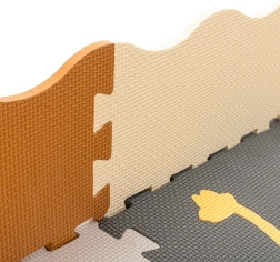 1 cm storio EVA putos sugeria kritimus ir izoliuoja nuo šaltų grindų. Neslystantis paviršius didina stabilumą žaidžiant ir ropoj ant.