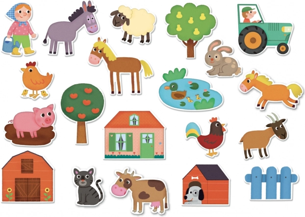 Šis mėgstamas rinkinys vaikams suteikia linksmą pažintį su gyvenimu ūkyje. Mediniai magnetukai yra tvirti, malonūs laikyti rankoje ir dėl kokybiško spaudos paviršiaus – gražiai spalvoti. Tinka laisvam žaidimui, pasakojimams ir pirmajam gyvūnėlių pažinimui.