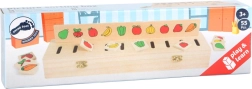 Atraskite smagią medinę dėlionę–rūšiuoklį, kuri vaikams padeda vienu metu mokytis ir žaisti. Joje yra 5 įstatomos plokštės ir 50 kvadratėlių su simboliais, kurių dėka vaikai lavina spalvų atpažinimą, formų, gyvūnų, vaisių, drabužių ir skaičių pažinimą. Tvirta medinė konstrukcija ir saugiai užsifiksuojamas dangtelis su 2 užraktais užtikrina patogų visų dalių laikymą ir tvarką po žaidimo.