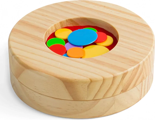 Stilingas medinis dėklas tarnauja ir kaip laikymo vieta, ir kaip žaidimo pagrindas – viską visada turėsite kartu ir paruoštą žaidimui namuose ar kelionėje.