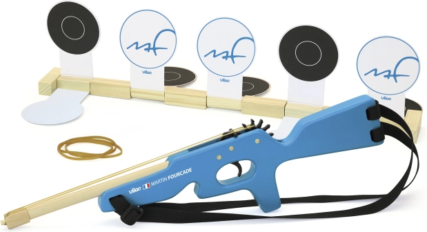 Žaismingas biatlono šautuvas mažiesiems sporto entuziastams, įkvėptas garsaus prancūzų sportininko Martino Fourcade'o. Šis medinis žaislas puikiai tinka visiems vaikams, kurie nori pasijusti tikrais biatlonininkais.