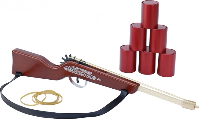 Tapkite mažuoju kaubojumi su šiuo stilingu mediniu VILAC šautuvu! Rinkinyje yra šautuvas gumytėms, 20 gumyčių ir 6 mini skardinės smagiam ir saugiam šaudymui. Puikus žaidimas taiklumui, motorikai ir varžymosi dvasiai lavinti, vaikams nuo 5 metų.