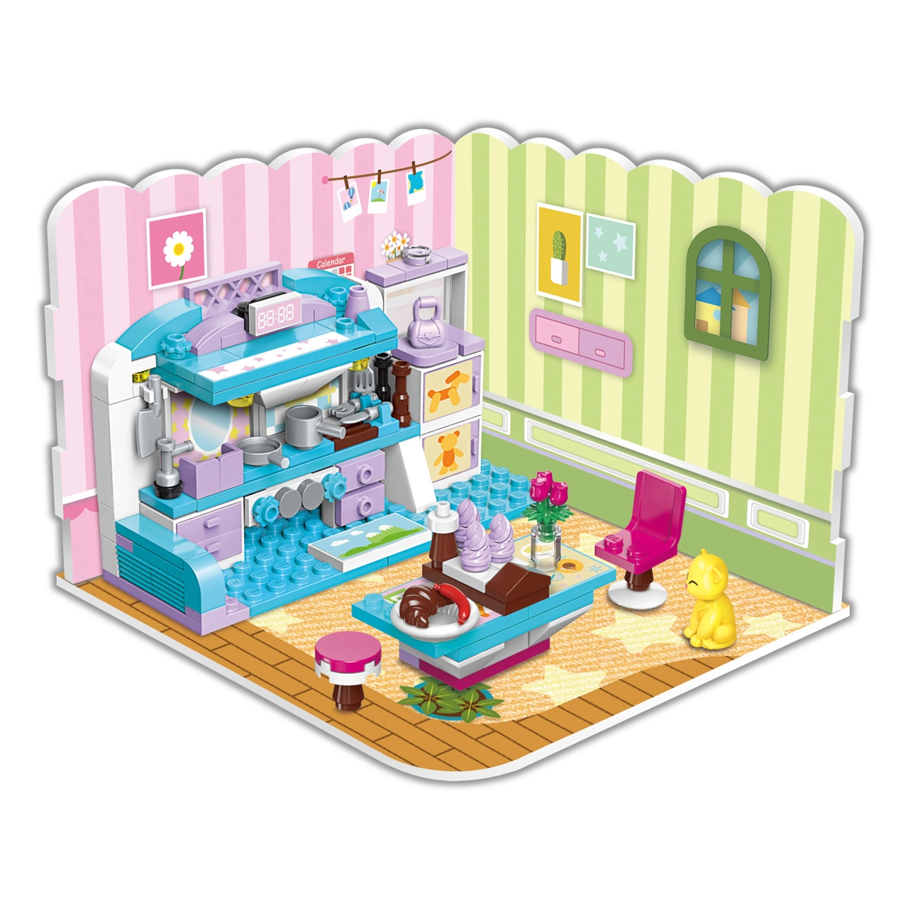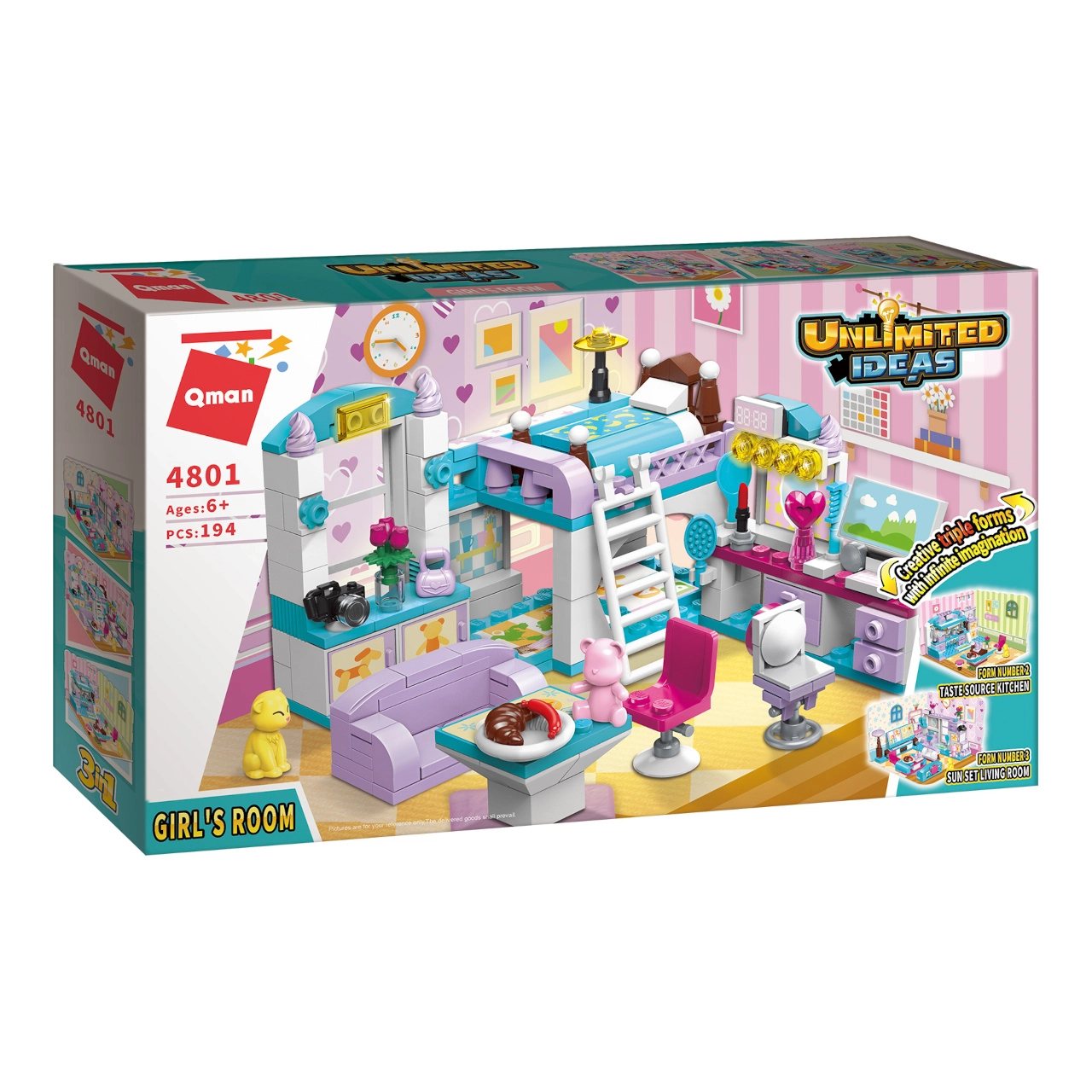 QMAN Mergaitės kambarys 3-in-1 konstruktorius suteikia vaikams begalę statymo ir istorijų kūrimo galimybių. Iš vieno rinkinio sukursite pilną kambarį su dviaukšte lova, rašomuoju stalu ir dekoracijomis arba perstatysite į jaukią svetainę ar valgomąjį. Ryškios spalvos ir detalūs priedai įkvepia ilgam, kūrybiškam žaidimui.